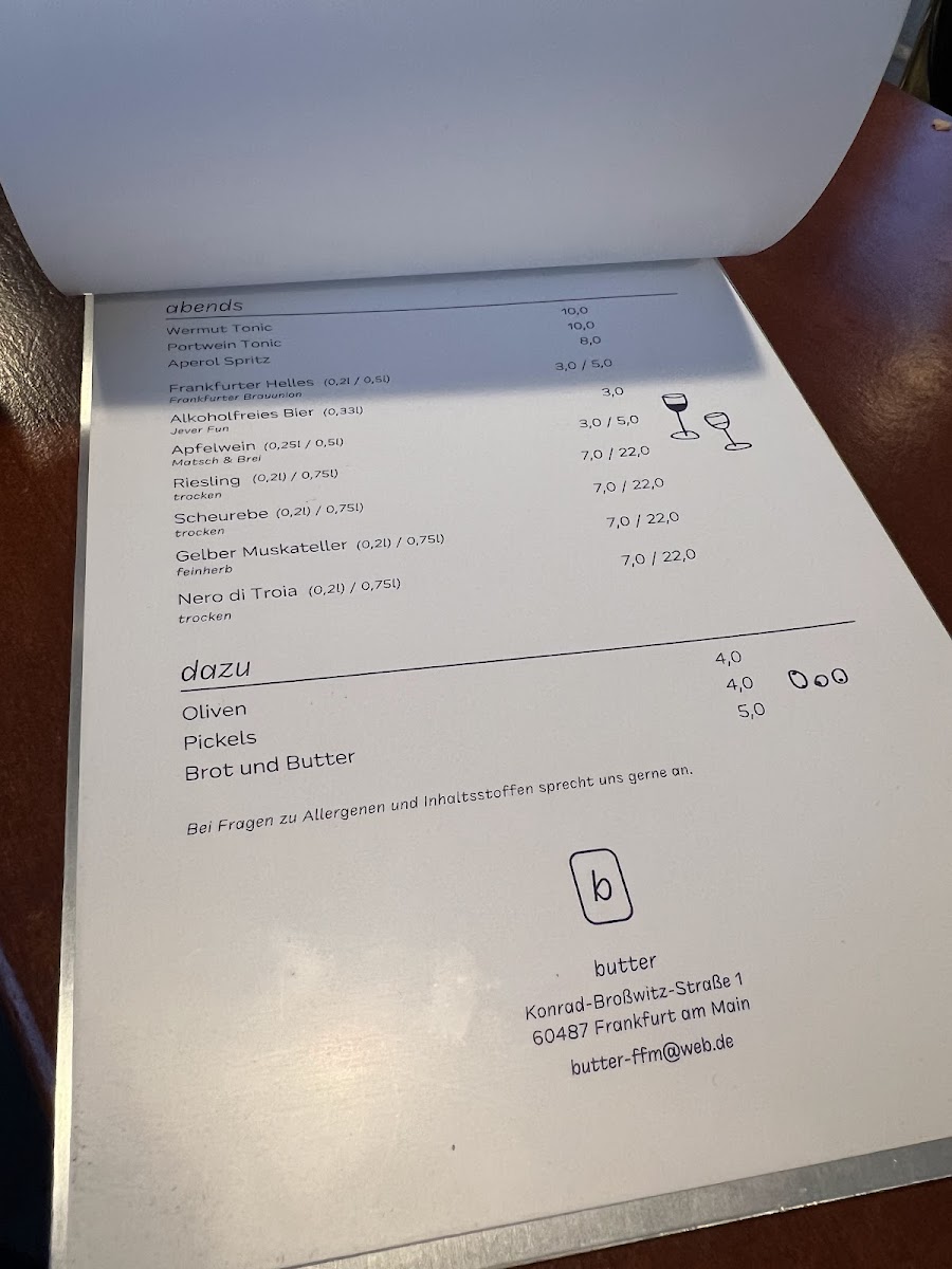 butter, Café Menu